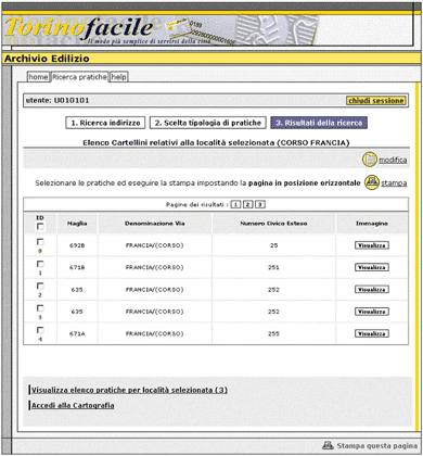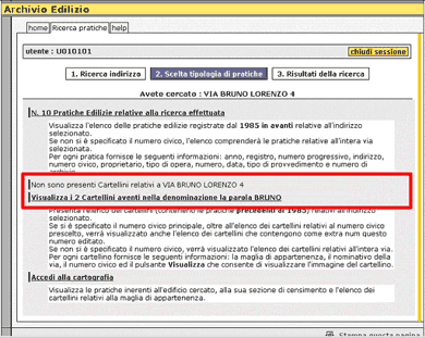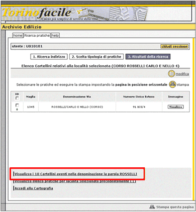 oppure visualizzare l'elenco delle pratiche per l'indirizzo selezionato