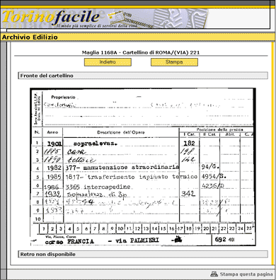 Cliccando sul pulsante Visualizza viene visualizzata l’immagine dei cartellini associati all’indirizzo prescelto (approfondimento su come leggere un cartellino).