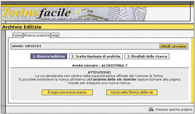 In questo caso l’applicativo avverte che la via inserita potrebbe