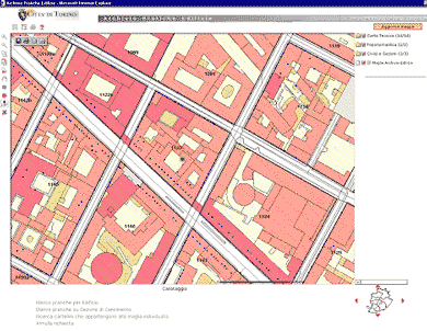 L'interfaccia cartografica permette di selezionare il punto in cartografia da utilizzare per le ricerche in archivio edilizio. Si accede a questa pagina attraverso il comando Accedi in cartografia.