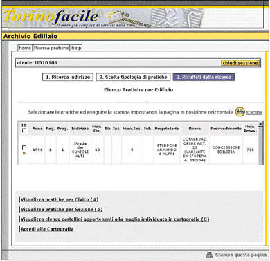 La pagina presenta l’elenco delle pratiche inerenti all’edificio